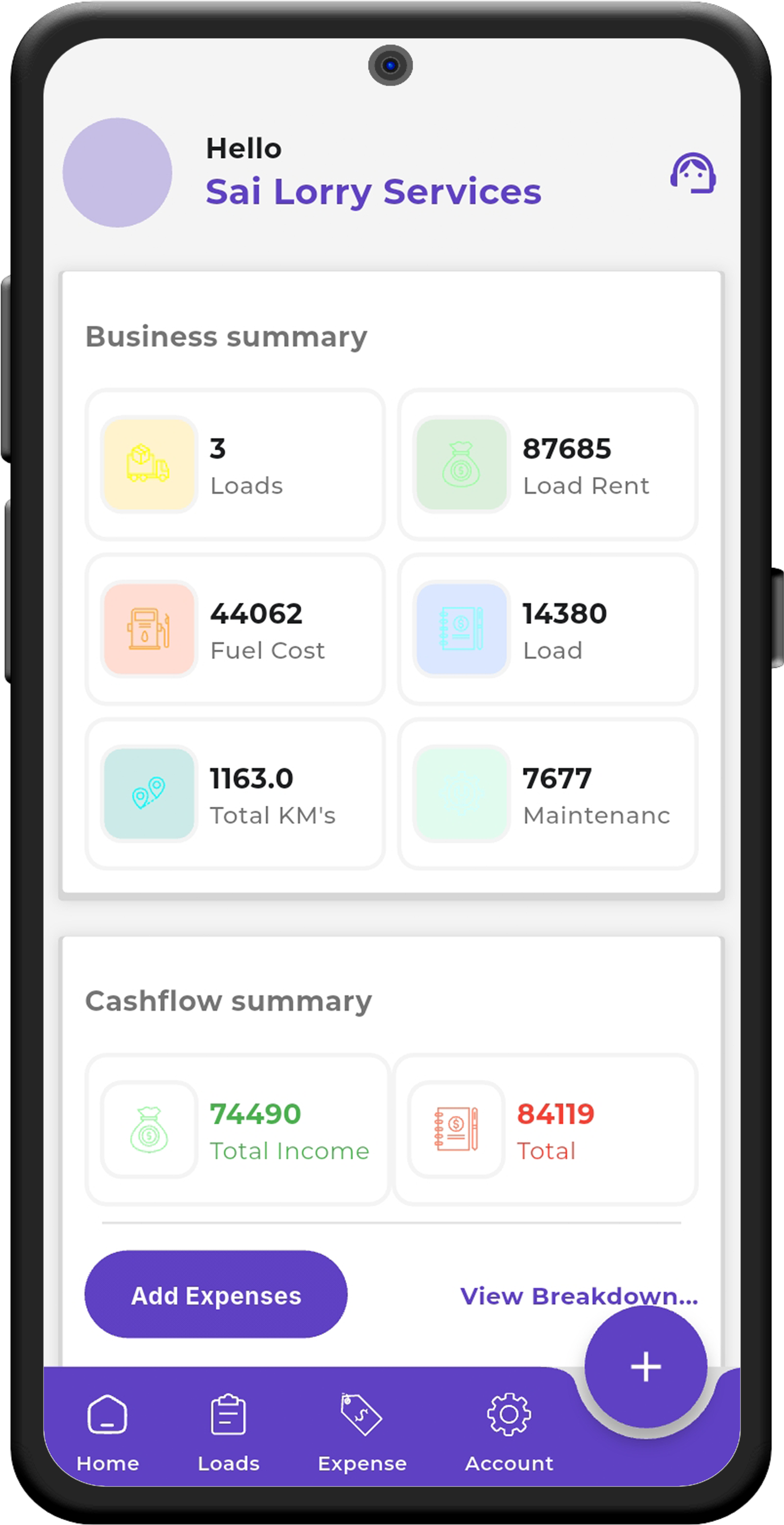 Keep track of all expenses, including loading/unloading charges, police fines, RTO fines, transport commissions, and more.